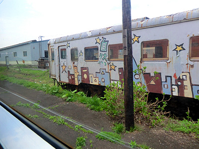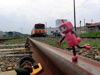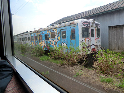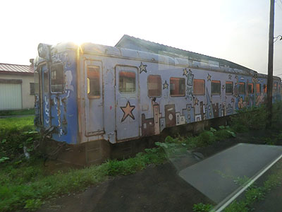 毎日がネタまみれ普通にしてるのになんかネタっぽい生活PAGE | 348 346 345 344 343 342 341 340 339 338 336 | ADMIN | WRITE 青森旅行2日目弘前から奥羽本線で川部で乗り換え。 左が乗ってきたやつ、右がこれから乗るやつ。 この空気、感じ、地元を思い出すぜィ・・・。 ガタガタ揺られ、辿り付いた場所はここ! ごめん、駅名撮るの忘れた。五所川原です。 しかし五所川原から更に北上します。この津軽鉄道で! ストーブ列車で有名な鉄道ですね♪時期違うから無かったけど。 走れメロス号に乗りました。 沿線に太宰治の家があるのです。 だから治ちゃんの作品名が付けられた車両。 しかし全面オレンジに緑ってこれまた奇抜な・・・。 休憩室の中にはミニサイズのねぷたの装飾が♪ これは可愛いぞ! 猫か何かいる・・・だと・・・? 津軽五所川原から終点、津軽中里まで一気に行きまーす! きっぷはこんなやつ。 マイミクさんに教えてもらって購入した、JR東日本の吉永小百合の「大人の休日」のパロディ。 その名も「津鉄で休日」wwwwwww 東日本大震災への義援金絵はがきです。 これがなかなか質が良いwww ちょっと雲掛かっちゃってるけど、いわき山。 そして手前はリンゴ畑。 いつだかに香取慎吾がアートした車両らしい。 この顔・・・なんか似たようなのどっかで見た事あるような・・・。 ・・・ッ!!これだぁああああ!!!!! 先頭車両の窓から進行方向の車窓を見てみる。 桜のトンネル、満開だったらキレイだったんだろうな・・・。 まっすぐな線路。 着きました!終点の津軽中里! 日本最北の私鉄、津軽鉄道。そして最北の駅、津軽中里駅。 田舎!って感じの主張が良いね(笑) 外から見た駅。 何これ、鴨川より立派じゃない・・・!! 駅中の休憩所にあった大漁旗。 広いけど、あんま物無い。 一番奥にあった謎のステージ。 ステージ上から入り口。 凄く広々ー。 地元のおばちゃん達がお菓子や特産品を売ってました。 可愛かったのでウサギの落雁を購入。 お茶を貰ったので、一服休憩。 外から見た走れメロス号の車体。 うーん、オレンジオレンジしい! 最北の踏み切りから。 走れパスモ