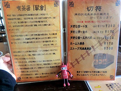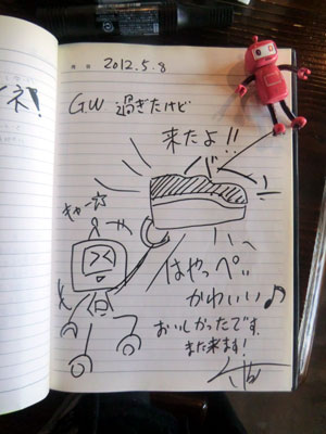 パスモゎ走った…… スイカがまってる…… 発車時間になって今度は金木駅で下車。 『斜陽館』 ハイ、ここが太宰治生誕の家です。 なにあいつ、もんのすげーボンボンじゃないの!!!!! 治ちゃん爆誕の部屋。 叔母さんの部屋らしい。 すぐ近くには津軽三味線会館。 こちらでも津軽三味線の演奏が生で聴けます。 一番前の真ん中で鑑賞。 この人は師範代の方らしい。いくつかの節を演奏してくれた。 「津軽じょんから節」の時だけ桜散って、ライトの演出が(笑) やっぱり一番有名だからかね? 近くのお土産屋さんではこんなまんじゅうが! いっつも友人達と学生時代からふざけて「治ちゃん、治ちゃん」って言ってたけど、現地でも治ちゃん呼ばわりされてるとかwww ちょっと遅いお昼ご飯に「太宰らうめん」 しょうゆ味とシジミ出汁のあっさりラーメンでした。 PASMO「根曲がり竹とわかめがいっぱい入ってる!」 最近とんこつにガンガンニンニク突っ込んでそれに慣れてしまってる自分にとっては、かなーり薄味でした。 食後の運動で芦屋公園駅まで歩いていきます。 そして辿り付いた行きたかった喫茶店「駅舎」 元はこっちが芦屋公園駅だったのです。それを改装して今は喫茶店になりました。 看板がちゃんと立ってる。 メニュー表には由来。そしてお隣の元駅と提携してるのか、実際の乗車きっぷもこちらで買えました。 白玉ぜんざい!(ただし抹茶アイスは食べられないので連れにあげた) これはぁあああああああああかわぇええええええええええええええええええ!!!!!!!!!! なんなんだ、この可愛い和菓子は!!!!!! お店オリジナルの和菓子、「はやっぺい」です。 なにこれなにこれ、まじかわええやべぇ!!!!! うっかり店頭販売してるはやっぺいを全部買い占めたよね!!(閉店間際で客は自分達だけだったので問題無し) 金木は馬肉も有名なようで、馬肉入りの中華まんも食べました。 ラーメン食べたばっかだってのに、こいつら食い過ぎである。 コーヒーは自分は普通の万茶ンからのやつで昭和のコーヒー、連れは自家焙煎のコーヒーでした。 自家焙煎のは美味かった。 多分、この青森旅行で一番美味しいコーヒーだったと思う。 お店の雰囲気も、店員のおばちゃん達も優しくて、凄くまったりした時間を過ごせました。 ここはマジで皆にオススメしたい場所ですね。 記録ノートがあったので描いてきたよ♪ 芦野公園。 なんかあんまり良い雰囲気じゃなかったので、早めに撤退。 軍鶏供養搭・・・。なんなんだ、これ・・・ 桜のトンネル(だったはず)の線路を撮る連れ。 自分。 こんな感じです。 連れ。 自分。 きたー! それでは五所川原に戻ります。 行きの時に見た香取慎吾落書k・・・アートの車両。 かろうじて「しんご」って読めるショット。 五所川原に到着し、夕飯食べる居酒屋を予約した後、時間つぶしで立佞武多の館へ。 で、ででで、でけぇ!!! 中では何故か漫画家の原画展がやってました。 どうやらイナイレの漫画を描いてる作家さんのようです。 生原稿じっくり見てみたけど、やっぱプロって凄いな。きっちりかっちり仕上げてる。 全ての原稿写真撮ったけど、枚数が多いのでカラーとモノクロ1枚ずつで。 夕飯の居酒屋に入店。 前日とは違い、ちょっとキレイめな所です。 うぇーい! 左から田酒、豊盃、岩木正宗。大吟醸セット、てへぺろ☆彡 津軽と言えば!ニンニク!ふっひゃー☆ あまりにも美味しくておかわりしちゃった。 地酒の棚。 冷蔵庫。 豊盃も気に入ったようです。 しじみバター。 初めてしじみ食べた! かなりご満悦で良い笑顔だったので黒つぶしで。 締めのしじみ玉子雑炊。 しじみがとぅるるるるるるる!!!!! ここでも三味線演奏がありました。 前座は無しで、この2人が演奏。 こう言っちゃなんだけど、前日よりこっちの方が良かったかな。三味線もご飯も。 三味線撮らせてもらった。 バチだけでも6ケタなお値段。鼈甲だったっけ? 持たせてもらった(連れが) 念願の津軽三味線だったようで感激してた。 満腹になり満足して弘前まで帰ります。 終電でな! 五所川原さらば!また来たいぞ!! 物足りなくてホテルでビール。 うーん、満足な1日だった♪ では最終日の3日目へー。 PR CommentsComment Form |