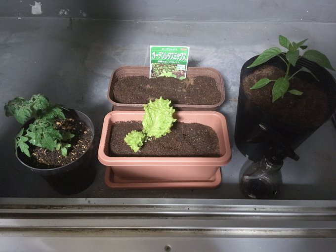 ベランダ菜園始めてみましたGW期間に実家に帰った際に、親から庭で育ててる苗と種をいくつか貰ってきました。 苗で貰ったのはピーマン、ミニトマト、サニーレタス。 種ではガーデンレタスミックスです。 ↑5月7日 東京に戻ってきて翌日に植え直した状態。 5月14日 初代しおから氏のお墓の花も植え替え。またヒマワリの種を植えました。 土をひっくり返してたら、埋葬して1年ちょいでキレイに遺体が土に還るもんだね。 ちょっと毛の残った頭蓋骨がコロンと出てきたよ(笑) まぁ、あんだけ見事なヒマワリ咲かせてたらなぁ…。その時の写真は撮ってません。 5月27日 ヒマワリの成長スピードがパねぇ。 日記を書いている今現在(6月14日はもっとヤベぇ状態) ピーマンは一番花が付いたのでもぎ取る。いくつか花も付く。 アブラムシも付き始めたので、ガムテープでペタペタ。 ガーデンレタス、もっさり一気に生えた。 なんだこれは。 種まき過ぎた。(全くやり方分からなくて、袋に入ってた種全部まいたからな) サニーレタスは色づいてきた。もう食べられる状態。 横が空いてるので、間引いたガーデンレタスを植えてみる。 ミニトマトの実ができてきた! 5月29日 サニーレタスの初収穫と、ガーデンレタスの間引き サラダにして食べてみました。 ピーマンとトマトは市販のもの。 うん、美味しい。 間引き菜はちょっとピリッと辛さがあるかな。 以前差し入れとして頂いたドライドレッシングをかけました。 6月10日 ガーデンレタスの右半分を間引き マヨネーズでもぐもぐ。 ミニトマトは実がたくさんできてきた。 ピーマンは最近気温の変化が激しく、小さくできていた花も落ちてしまった…。 実は6月3日に、ラディッシュ、大葉、パクチーを追加で種からまいていた。 ↑は6月10日段階のラディッシュ。 種をまいてから2~3日で芽が出てくれて、成長具合が分かりやすい。 本葉がしっかり出てきたら間引く予定。 6月10日のパクチー。ちっちゃな芽が出てきた。 合法ハーブ1である。 6月13日の大葉。 種まきから時間かかったけど、ようやく芽を確認。 合法ハーブ2。 お遊び的な感じで、小さいポットにもガーデンレタスを移植し、ラディッシュを種まき。 ガーデンレタスは、プランターの方より隣との間隔が広いせいか、 こちらの方が成長具合が良い。 ある程度良い感じに育ったら、欲しい人誰かいたらあげようかなーと思ってる。 6月10日に全ての作物に追肥をしてみた。 殺虫剤等の農薬は未使用です。今後もその予定。 特にピーマン、成長頑張れ…! スパコミのお知らせ
