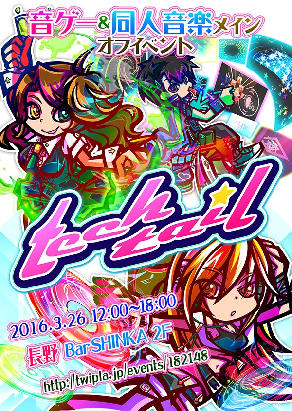 最初から最後まで某牛丼チェーン店を舞台にした、IC's!達(ICカード擬人化)のわいわいギャグ。 ■無料配布 「林檎」に過剰反応しているこの頃最近まんまと、林檎フィーバー中です。 いえ、食べるリンゴは元から大好きです。我が家の健康の秘訣。 林檎とは何かって? コナミの音ゲーSOUND VOLTEXの「PULSE LASER」「GIGI BABA」のジャケットイラストのキャラ、 ジャック&ローズです。 この2人の名前を繋げるとカクテルの名前になり、そのカクテルにはカルヴァドスという 林檎のお酒が使われているので、それにあやかって【林檎コンビ】と読んでいます。 その2人のキャラを、妄想でちょこまか動かしたりして遊んでます。 本当はあと2人、黄と緑がいるんだけどね(笑)その2人はちゃんと出せたら【柑橘コンビ】と呼べれば良いなーと。 コスプレしてもらったり、二次創作で小説書いてもらったり、 イメージグッズやイメージカクテル作ってもらえたり、消しゴムはんこ掘ってもらえたり。 とてもとても嬉しいです。 ちらっと話題にしてもらえるだけでも嬉しくてしょうがないんです。 自分1人で妄想して楽しむのも良いんだけどね、そのネタで会話してくれる人達がいるとね。 もうね、色々とね。もっと楽しいよね。 林檎沼においで~~~~~♪ あ、あとこの7月の連休初日に1年ぶりに病院に行け、 ついでに頭バッサリと切ってきました。 さて、あとは夏コミ進行…。ギリギリ間に合うかな…どうだろう…。 夏コミ原稿以外もいくつかお絵描きのお仕事が同時進行で入っているので、 現在ちょっと、リアルに焦り気味です。 公開出来るような案件は後程お知らせ致しますね~。ではでは。 【音ゲークラブイベント】9BUTTON MixxxxX!!(当日なので宣伝もう一回!)