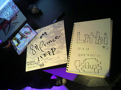 場所は六本木のニコファーレです。 六本木は時々行くのですが、こちら側に降りたのは初めてでした(いつもヒルズ方面) 目の前にはKONAMIのビル。 最前列で、スピーカーの隣にいました♪ ここは低音が常に感じられて、イベント中は幸せでしたー! ←低音好き さすがニコニコ動画が作ったクラブ、放送中はリスナーさん達のコメントが壁一面に流れてました。 イベント中は撮影等は一切禁止な為、どんな雰囲気だったか言葉では表し難いですが、とりあえずキレイで凄かったと言っておきます。 ちなみに大好きなヒゲドライバーさんの「マイティボンジャック」のシーンでかなりの笑顔で「Hey!ジャック!!」してる自分の姿を、タイムシフトで確認しました(笑) その後もチラチラ映ってたりします。 音ゲー好きな人達に自慢。 まさかの「PULSE LASER」流れたぜ☆ そういや、八王子P、ヒゲドライバーさん、bakerさんって3人ともSDVX参加してたね。 参加者限定サイン会。 自分はジントニック片手に様子を見ていました。 こっそりbakerさんとヒゲドラさんも入り口に立って様子見てたり(笑) bakerさんは片付けの為にすぐ引っ込んでしまいましたが、ヒゲドラさんだけ残ってたのでサイン貰っちゃいました♪ ペンを持ってなかったようなので自分の筆ペン貸したけど、ちょっと列出来ちゃったのでそのままあげてきちゃいました。 原稿用のノートの最後尾ページにしてもらった♪ これで原稿に挫折した時はここを開けばやる気復活! そんなわけで皆さん、イベントお疲れ様でした!! 八王子Pは翌日北海道との事でお気を付けて! 絵チャなう!http://www.takamin.com/oekakichat/user/oekakichat3.php?userid=94766