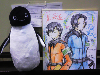 徐々に情報が増えていきます 新規更新部分は赤字 ICカード擬人化&鉄道擬人化スペース 東2 ア-39ab 基本的にスペースにいるかと思いますが、もしいない場合は狩り中とお考え下さい。なるべく早く戻ってくる・・・! スケブは受け付けていますが、かなりの遅筆なので早めに来て頂けると助かります。 今回新刊はありません。 Litbiの新刊はありませんが、一緒に参加するわかの新刊があります。 本文数ページに我が家の二次な話を描いてくれてるそうです!(現在進行形) 黒執事パロらしいぜ! ペンさん!めぎゅろ様!! もし無事に発行できたら 購買物が無くてもご自由にお持ち下さい。無くなり次第配布終了です。 あとポスターの存在すっかり忘れてたので今から描きます。 今後もイベントで使い回しできるようにしたので、今回のポスターは差し上げる事が出来ません。 つーかB0・・・。 ■アンソロ参加・委託・お手伝い情報 「定時運行なう!」・・・「鉄道擬人化1次キャラでTwitterを使ったらどうなるか本を作ろう!」と言う企画(数ページの漫画で参加させて頂きました) 仕様:A5サイズ・オールフルカラー 頁数:68P 価格:500円 頒布スペース:擬人化王国4 東2 カー44a R.B.SELECTION 様 「緑の電車も!」・・・C78刊。緑色オンリー鉄道擬人合同誌(1Pイラストで参加させて頂きました) 仕様:B5サイズ・オールフルカラー 頁数:16P 価格:300円 ※在庫がかなり少ない為、購入ご希望の方はお早めにお越し下さい。 擬人化部チラシ配布 ![]() 腐男子なう2@CAFE801チラシ配布 ※バナー画像は1の時の物です(新バナーが無い為) ■二次創作スペース情報 うはーいと宣伝! 東2 エ-01a 「ちゃり」様 どっちがメインなのか分からない擬人化サークルは自分の所含めて5サークルのみ! おいおい前回より少ないぞ!(笑) 会場に行くまでがね、ある意味ネタでした。 エルシャダイオンリー一般待機列恐ろしや。 なに、この一般待機列で出来たサークル入場花道 自分が会場に着いた時点で800人、スペース準備終えた所で1000人超えてたとか。 先頭の人達はスタッフが会場に来る前から既にいたそうですぜ。 本当にもうお祭騒ぎだな!(笑) イベント開催時刻になり、1Fだった自分達のいるホールは比較的のんびり(目の前のエロ系サークルさんが怒涛だったけど) 4Fのエルシャダイオンリーに向かう人達の音がちと怖かった(笑) しかし20~30分後には戦を終えた戦士達が降りてきて、瞬く間に1Fは賑やかに。 総合イベントだからパンフ持ってれば自由に他のイベントにも行けるんだよね。 そのパンフも完売したみたいなんだけどね。 パンフ買えなかった組は13時のフリー入場まで外で強制待機になっていたようでした。 東横コスをしてくれたAさんには事前にサークルチケット渡してたのでなんとかパンフゲット。 しかしペンさん持ってきてくれたAさん(この日Aさんが2人 笑)は買えずにフリー入場組。 でもさ、パンフゲット組でもかなり色々難しかったらしい。 イベント開始1時間経たずにほとんどのサークルの本が完売してたとか。 自分が行った時には9割のサークルが全て完売。買えたのは1冊だけ・・・。 残っているのは大量に搬入してくれた一握りのサークルさんと、その場でCD焼いてるゲームサークルさんくらいだろうか。 「とらのあな・リブレット委託決定しました」札がいっぱい。 書店の中の人も作業はえぇな、おい(笑) その流れのついでだと思うが。某書店の中の人がウチのスペースに来て下さいました。新刊無くてスミマセン; その時点では自分の販売物も半分以上が完売札状態でした; この日は本当に搬入量読めなかった・・・。 アフターイベントは去年もあったじゃんけん大会です。 サークルには色紙を無料配布されて、余裕があれば景品用のイラストを描いて提供・・・っていうのがありまして。 自分はこんなの↓をその場で描いて出してきました。余裕なんて無かったけど・・・! JR川崎駅メンツを描こうとしたんだけど、そういえば南武をまだしっかり出してないので東海道と京浜東北だけに; 販売で余裕無くて、色鉛筆折れまくるわで、マニキュアなかなか乾かないわで、提出が一番最後だった・・・。 うむむ、スタッフさんすいません・・・。 今回も男性の方に勝ち取られて嫁いで行きましたー。 じゃんけん大会の一番の目玉はやっぱりエルシャダイのイーノックとルシフェルの色紙でしたね。 最後の最後に勝ち取った人が色紙を並べてくれて、しばらくそこで撮影会になってました(笑) ウチも記念に撮ってきた♪ これね。 イベントアフターはスーツパラダイスでご飯とケーキもぐもぐ。 ロールキャベツが無かったのは残念だなー・・・。お店によってメニュー違うんだろうか? すぐ満腹になって、時間になって出たら別イベントに行ってたらしいMさんと合流。 駅中のフードコートで休憩しました。 ちなみに前回のカンパニオンレポはこんな感じ 今日の鉄娘スペースは2号車2番A席です。