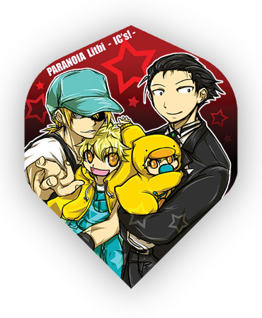 新作 『ダーツ 痛フライト』 合計6種類 3枚ずつで1セット 各500円 ※フライトの仕様により、シャフト付近にフライトブランド刻印が入ります。 「こんなの欲しいけどどこにも売ってない・・・、なら自分で作るか」 そんなわけで作っちゃった完全俺得グッズです。 しかも最近ハマってるダーツ用品ときた。 新作 『ダーツ一式セット(お好きなフライト1種類)』 2500円 ダーツケース、シャフト、バレル、チップ、お好きなフライトのシャープにクールなオールブラック一式セット。 これ1つでダーツが出来ます♪ 白いチップを会場に忘れてきたので、画像とは違い白いチップが3つ入ります。白黒! ダーツ仲間を増やしたいが為に作ってみた。 みんな!ダーツやろうぜ!! ちなみにダーツ一式セットと他フライト全種類を購入された場合、5000円きっかりになります。 詳細はまた後程~! PR 引越してました(過去形)まだ片付いてない部屋にいきなり2人もお泊り決定!鎌倉から帰ってきた後、急遽Akiさんと黒猫さんのお泊り決定したので、まだメインの部屋に無い電灯を買いました。 飲み屋で閉店までご飯食べた後に自分の部屋到着。 電気取り付けを手伝ってもらいましたが、これがなかなか設置難しかった(笑) 無事に取り付け出来たら全員疲れてたので即効就寝。 んで翌日。 お昼頃までのんびり寝て、起きたらPS2引っ張ってきて懐かしゲームをいくつか。 ここ最近ほとんどゲーム機起動させてなかったから、メモカ読み取るのも必死であった・・・。 やったのはDDR2nd、DDRアペンド1、ぷよぷよ~ん(2ルール)、バストアムーブ2、パラッパラッパー。 黒猫さんにパラッパを全クリしてもらった!どうしてもニワトリのステージが出来なかったんだ・・・。 夕方くらいまで3人で遊んでました。 朝飯兼、昼飯兼、夕飯を食べにやっと外へ出る。 有名なラーメン屋行こうと意気込んでましたが、日曜に限って営業時間が全く違うという! 2分前に閉店したよ・・・!!うぉおおおん!!! 仕方ないのでもう一軒狙ってた方に向かいました。 博多ラーメン。上記画像がそうです。 食べてブックオフ行って懐かしゲーム買ったらキャッツアイでいつものように音ゲー。 リフレクにデデマ曲入ってた事にすげービックリしたよ!!!! うぉおおおおおおこれ大好きな曲!!! しかし曲時間短くて良い所で切れている・・・。 ロングの原曲しか知らなかったから、ちょっと残念どころか激しくガックリ。 ちなみにあの曲はどう聴いても「ドクダミの入っている人参」と聞こえる。 またお泊りで遊ぶ時の為に、皆で遊べるゲームでも揃えようかと思ってます。 とりあえず桃鉄かな? それとぷよぷよ通。ぷよBOXとよ~んはあるけど、システム気に食わないんだわ。 あと置いといた方がいいのは、何があるかねぇ? 皆で遊べるお勧めのゲーム情報求むです。 急遽ぶらりリア充散歩キングスレイ&キハ共同杯 『桃太郎電鉄大会』11/21 4:51更新 擬人化王国4のお知らせ※イベント前日までこの記事が一番上にきます