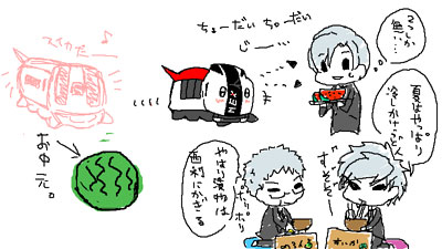 時々「んもうだめジェネレータ」で遊んでます。 ペンを握る手が思うように動かない今日の画像 総武線と常磐線(快速モード中) まだ7P目までしか描けてないんだゼ・・・。 先はまだ倍近くあるんだゼ・・・。 この後なんちゃってアクションシーンがあるんですが、筆ペンの勢いだけに任せて描いてみようと思う。 夏コミが更に楽しみになる理由がまた一つ出来たので頑張る。 パスモは出てないけど、横浜はまたいますよー! 相変わらず放送禁止用語のピー音を連発してますが(忘年会本の時より言ってるかも) メール届いた直後にちょうどPC開いたのですが、夜分遅かったので明日あたりに返信致します。 そんな中、プリンを作るという謎の行動を起こした。 忙しい時に限って全く違う事をやりたくなります。 型に入れてないのでミニボウルそのまんまです。ひっくり返すのがちょっと怖い。 昨夜(つーか朝2時)の絵チャラストに話してたみなと×東横がちょっと頭を離れません。 思う存分東横を泣かせちゃって下さい♪ >ある意味私信 しかしウチの脳内を駆け巡った錆妄想はマチ+みなと×東横の三人なのである。 だって前にYさんが「マチ×東横もアリ」って言ったから・・・! 絵チャ会、終了
